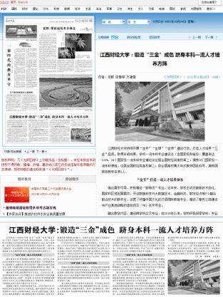 :光明日报:《江西财经大学:锻造“三金”成色跻身本科一流人才培养方阵》(