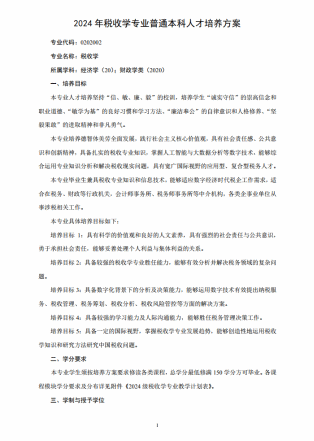 附件79:2024年税收学专业普通本科人才培养方案与教学计划表